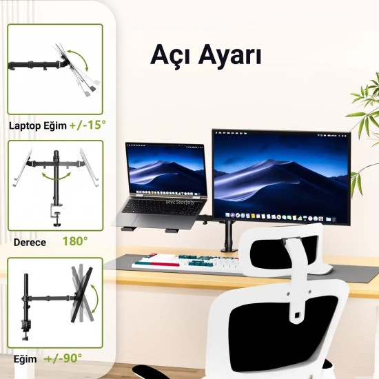 Laptop tutucu ayarlanabilir kol yapısı sayesinde ekran yüksekliğini, açısını ve pozisyonunu kolayca değiştirebilir; laptop standı,monitör kolu