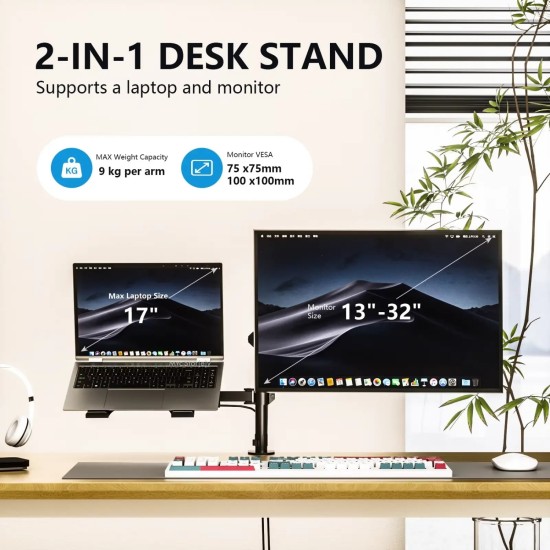 Monitör Kolu masa üzerinde hem monitörünüzü hem de dizüstü bilgisayarınızı ergonomik ve düzenli bir şekilde konumlandırmanıza olanak tanıyan