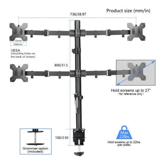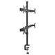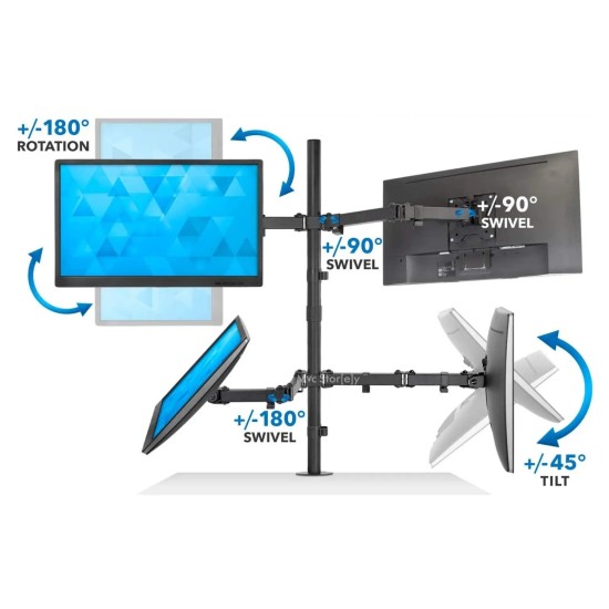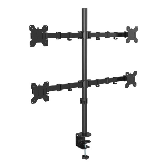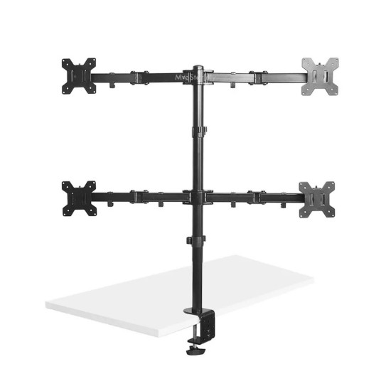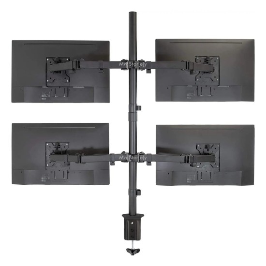 Bu sağlam çelik gövdeli monitör standı masa kenarına güçlü kelepçesi ile sabitlenir. Merkezdeki dikey kolon üzerinde üst ve alt yatay barlara sağlı sollu ikişer monitör takılarak toplamda 4 ekran kurulabilir.
