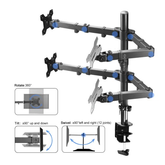 4’lü Monitör Standı 13–27 inç Yükseklik Ayarlı 360° Döner 90° Eğilebilir VESA Masa Kelepçeli